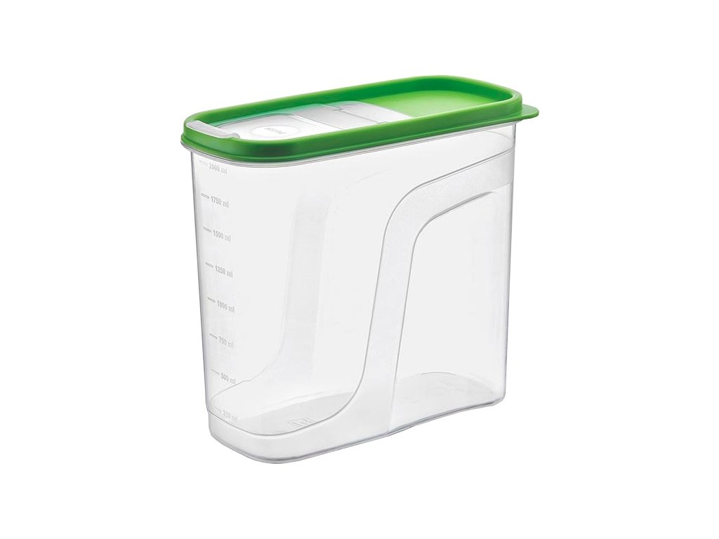 Dóza s dávkovacím výklopným víčkem je vhodná pro uložení mouky, luštěnin, cereálií apod.