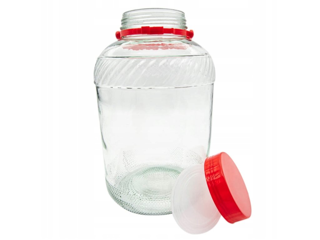 Objem sklenice 10 litrů, průměr 20 cm, výška 34 cm, průměr otvoru 11 cm.