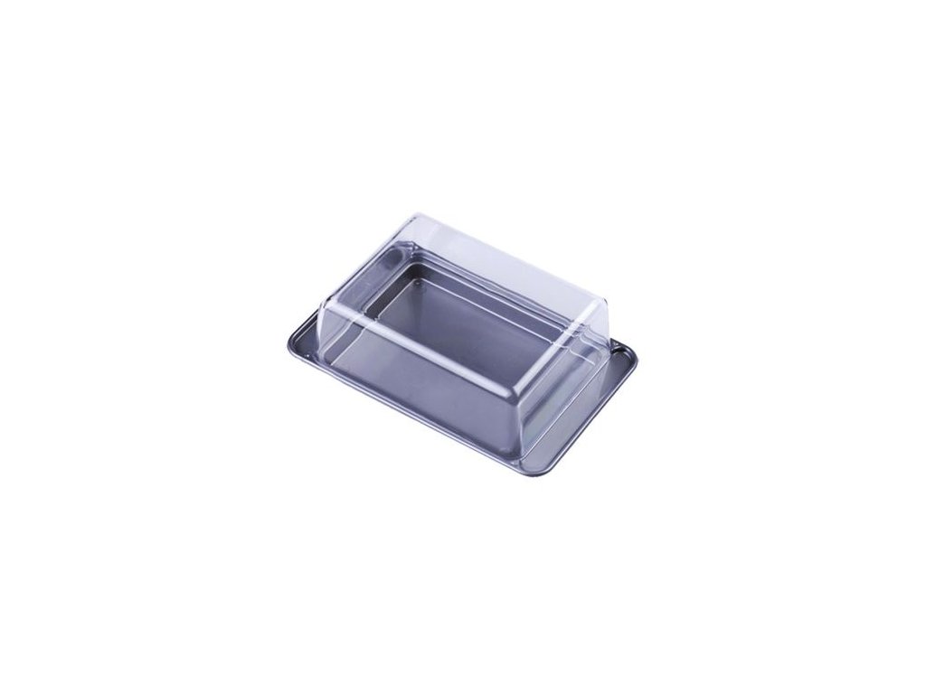 Kvalitní plastová dóza na máslo s průhledným poklopem.