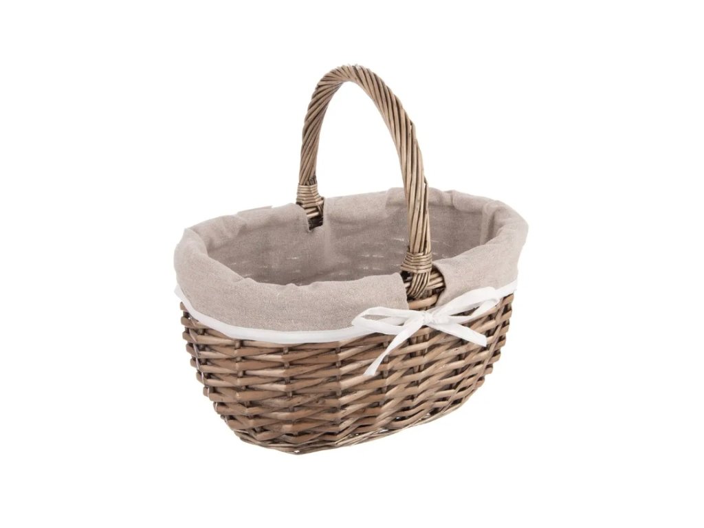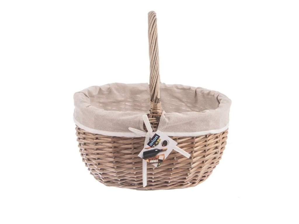 Proutěný koš s uchem a s vnitřní látkou využijete na piknik.