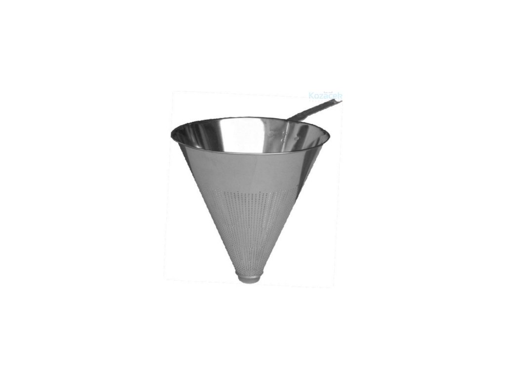 Pocínovaný cedník špičák vyrobený ze zdravotně nezávadného plechu.