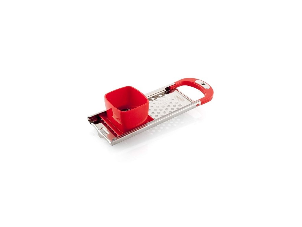 Struhadlo je opatřeno zarážkou, takže dobře drží na hrnci.
