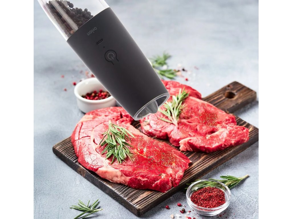 Elektrický mlýnek na pepř, sůl nebo jiné koření velmi snadno čerstvě namele koření při dokončování pokrmů.