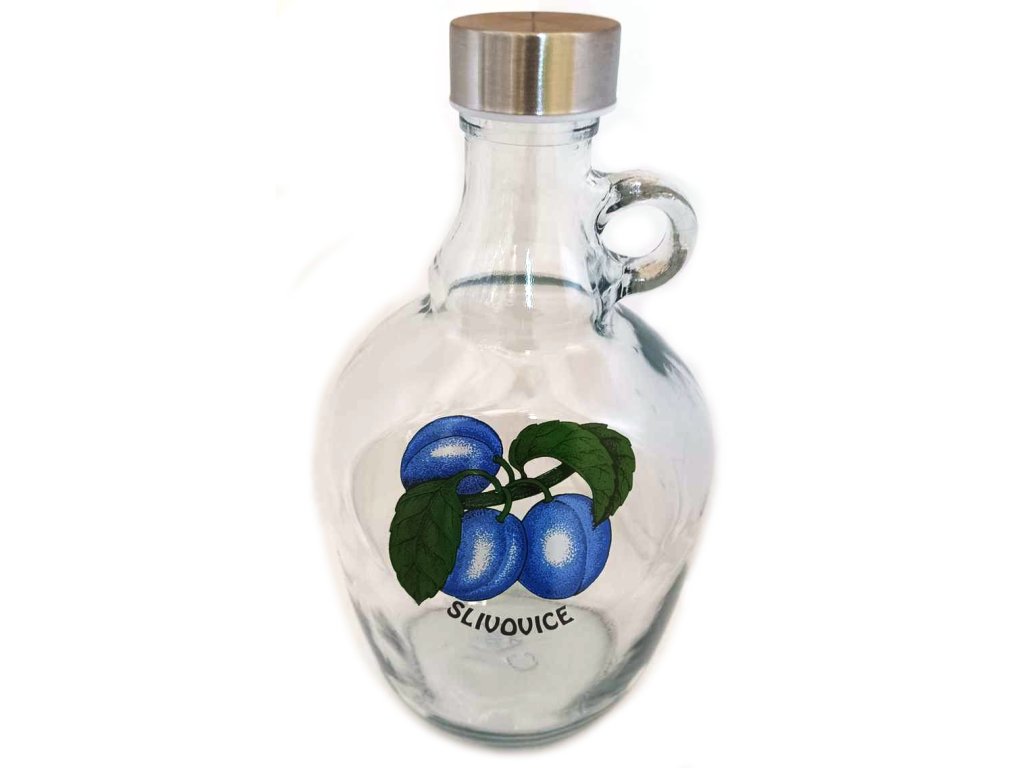 Demižon holý skleněný 2L ucho s uzávěrem ŠVESTKA