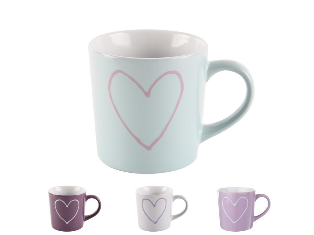 Hrnek s uchem, materiál keramika, dekor srdce, mix barev.