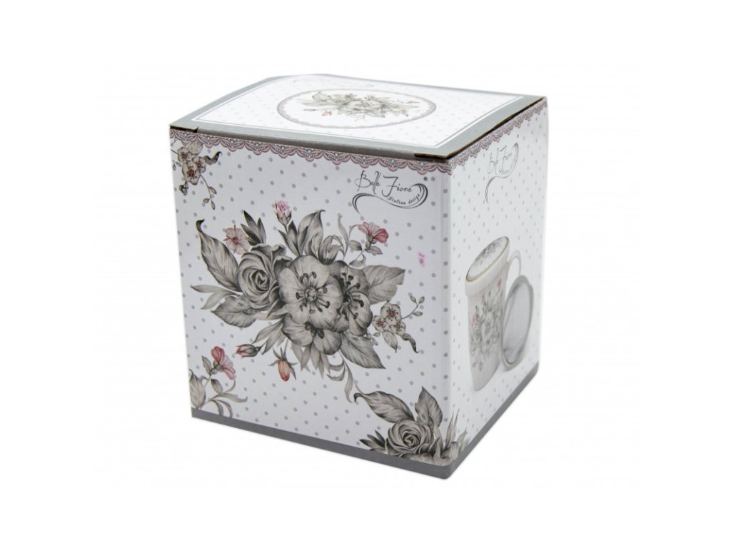 › KUCHYŇSKÉ POTŘEBY › NÁDOBÍ › Džbány | Hrnky | Konvice | Sudy › Hrnek porcelán s víčkem 340ml KVĚTY