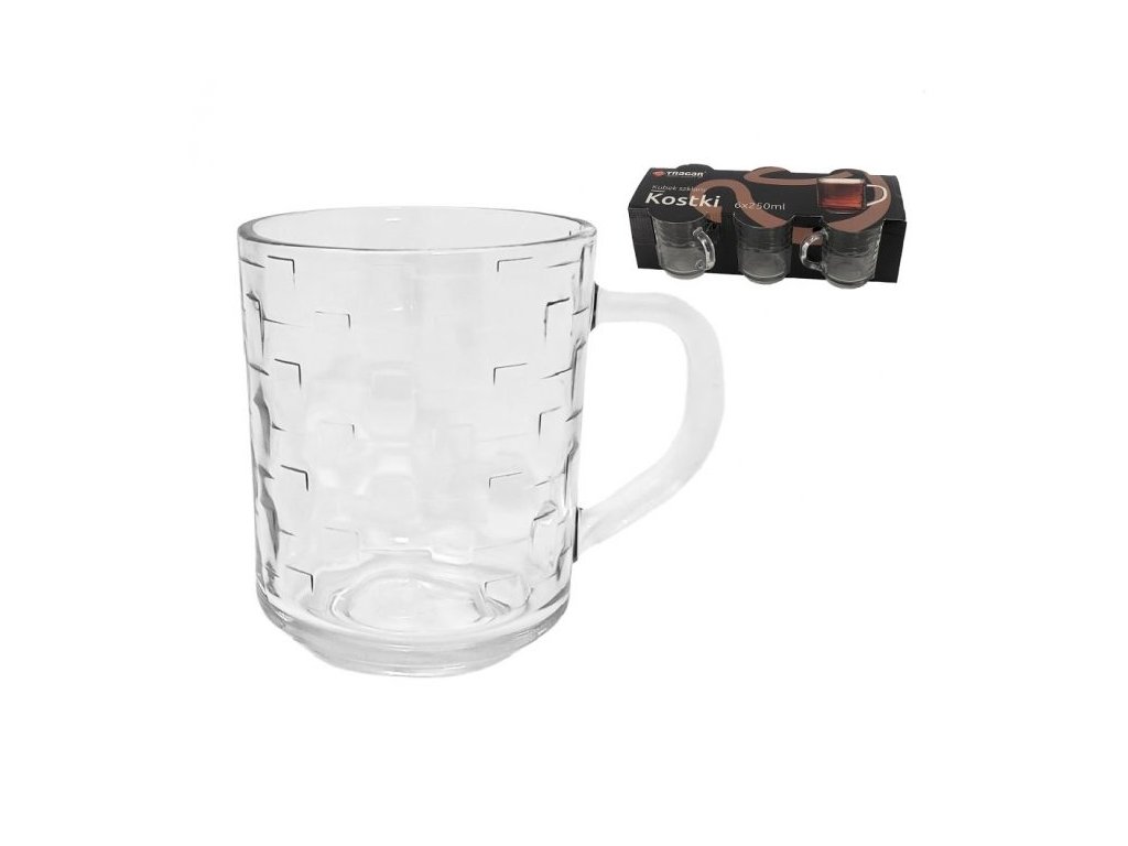 - hrnek objemu 250 ml je klasický hrnek s plastickým dekorem a s uchem, vyrobený z čirého skla