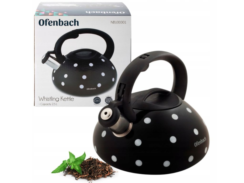 › KUCHYŇSKÉ POTŘEBY › NÁDOBÍ › Džbány | Hrnky | Konvice | Sudy › Konvice čajník nerez/lak 2,5L PUNTIK indukce, černá