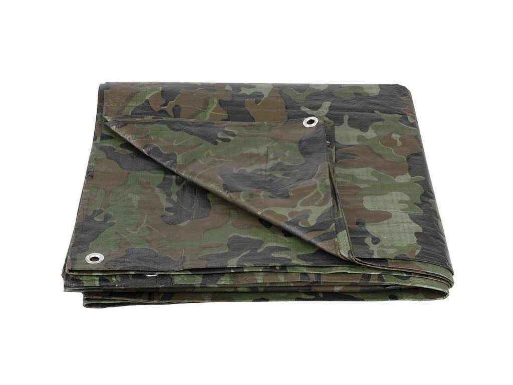 Krycí plachta v maskovacích barvách, kovová nerezová oka po obvodu.