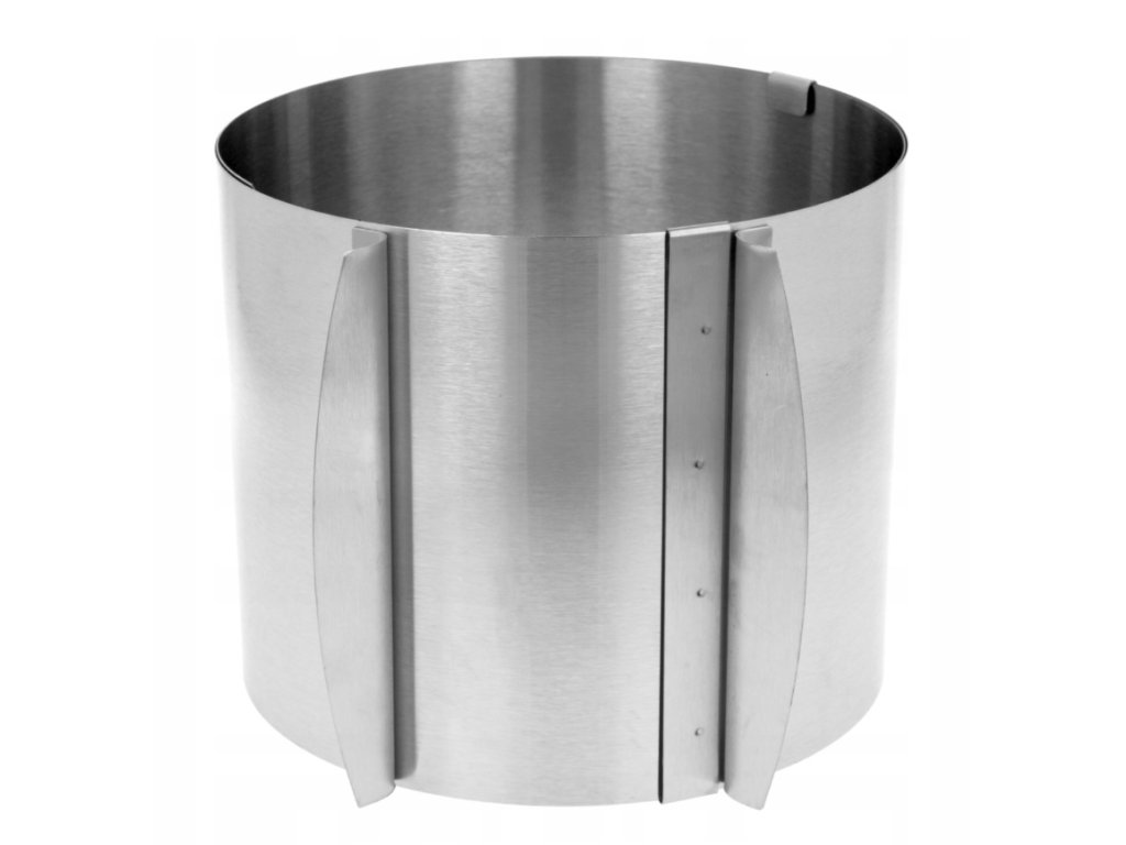 Díky nastavitelnému průměru od 16 do 30 cm a výšce 20 cm se pás dokonale přizpůsobí různým velikostem dortů, což umožňuje jejich rovnoměrné tvarování a pečení.