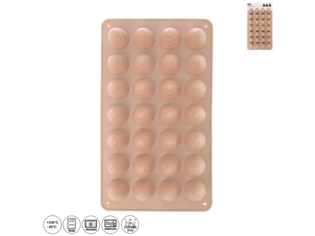 Forma obsahuje 28 tvarů a díky pružnému a nepřilnavému materiálu lze hotové úlky snadno vyjmout bez poškození tvaru.