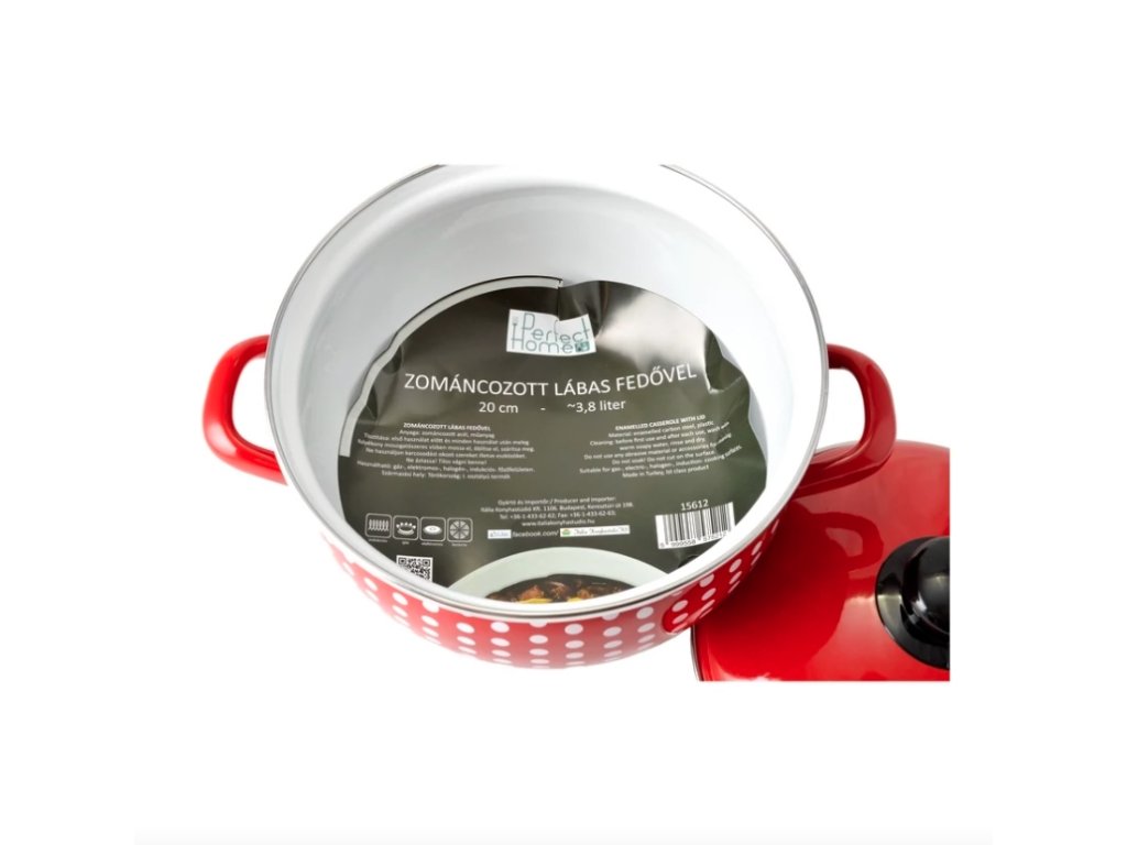 Objem 3.8 litru, průměr 20 cm, výška bez poklice 14 cm (poklicí 23 cm).