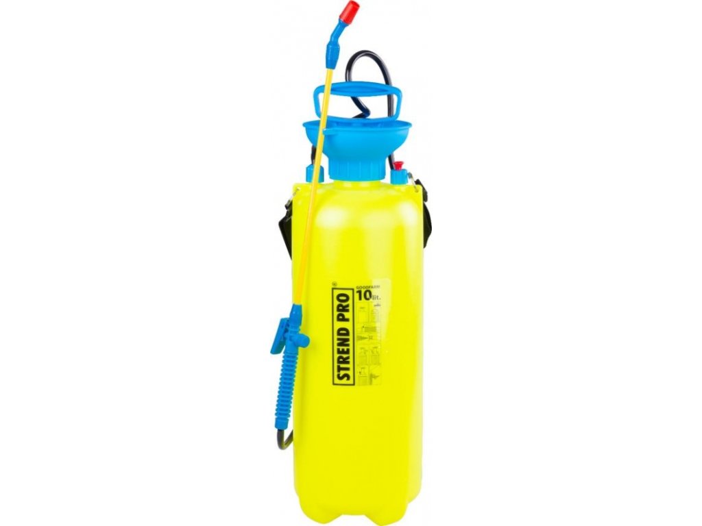 Součástí je postřikovací tyč s tryskou a textilní popruh na rameno.