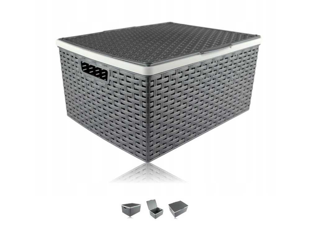Košík PH 42,5x35x19,5cm s víkem RATTAN šedá