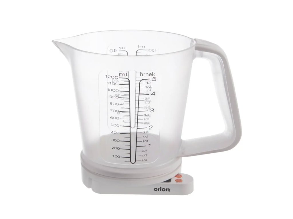 Kuchyňská digitální váha s odměrkou.