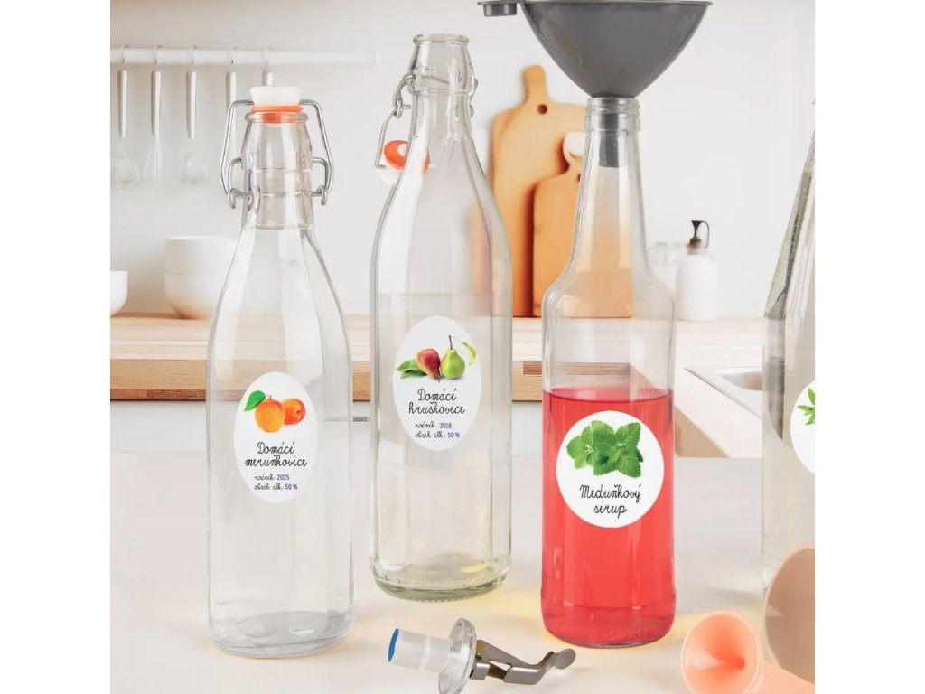 Samolepky na láhve, demižony nebo jiné nádoby s domácí hruškovicí označí i ozdobí váš domácí produkt.