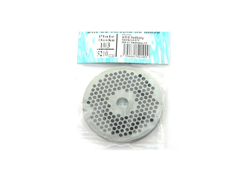 Masodeska do masomlýnku č.10, otvory průměr 3 mm.
