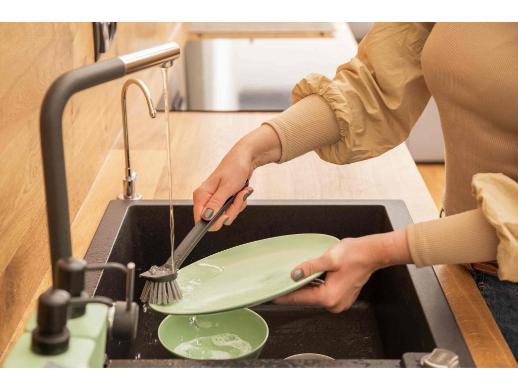 Umožňuje přesné drhnutí nádobí, hrnců, pánví a dalšího kuchyňského náčiní nebo počáteční mytí před vložením do myčky.