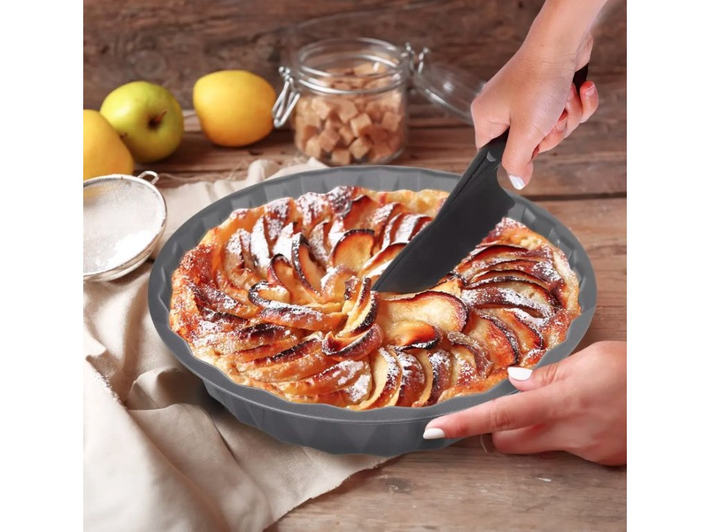 Dále s ním můžete krájet lasagne, zapečené brambory a nemusíte se bát, že poškodíte plech, pekáč nebo formu s nepřilnavým povrchem.