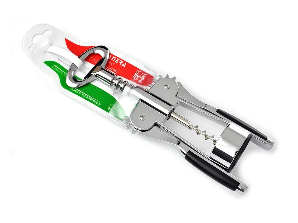 Vysoce kvalitní otvírák na víno a korunkové uzávěry, křidélkový systém (vývrtka má páková křídla, která po stlačení pomohou snadno vytáhnout špunt z lahve).