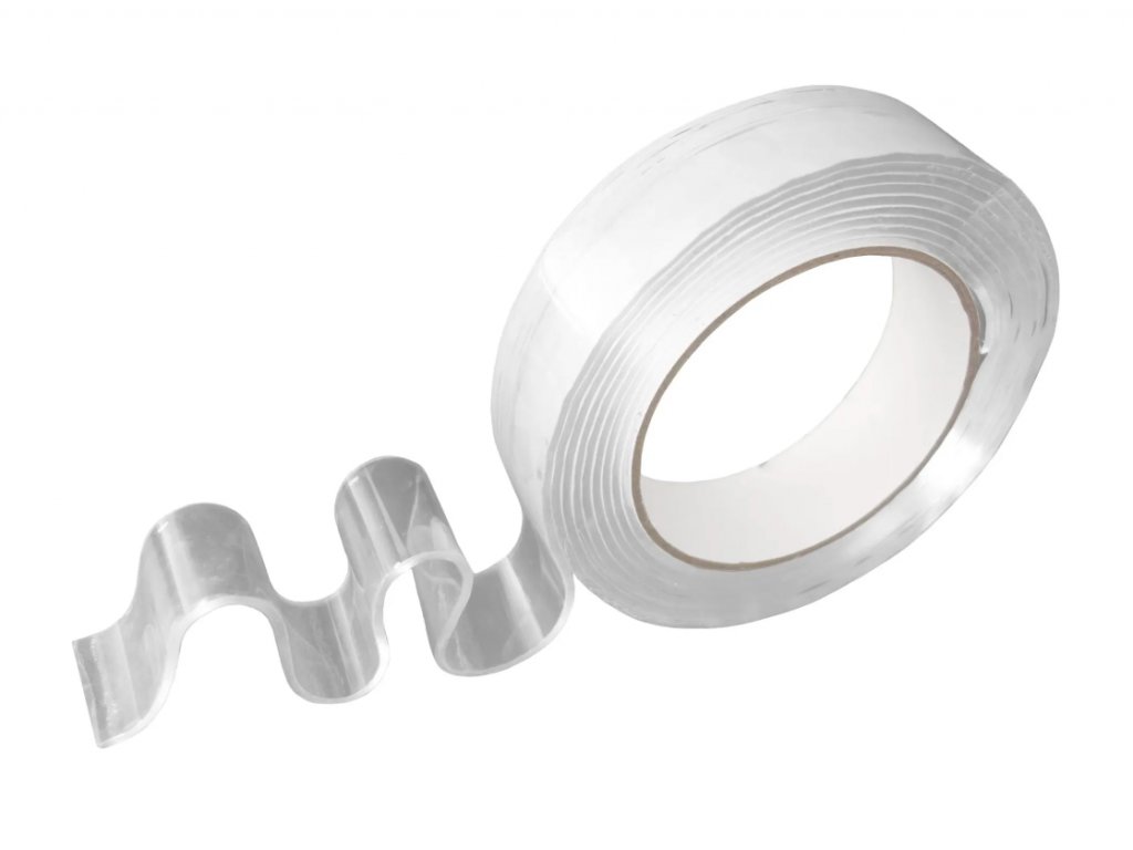 Oboustranná lepicí páska z průhledného akrylového lepidla s ochrannou fólií.