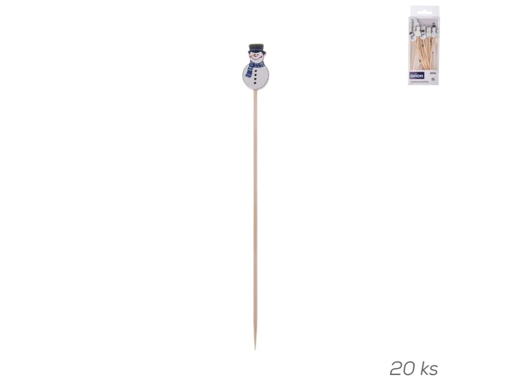 Bambusová napichovátka s barevnou ozdobou ve tvaru SNĚHULÁKŮ.