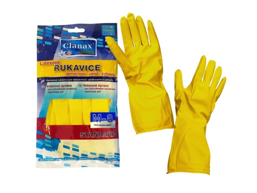 Latexové rukavice na úklid, velurová úprava, absorbuje pot.
