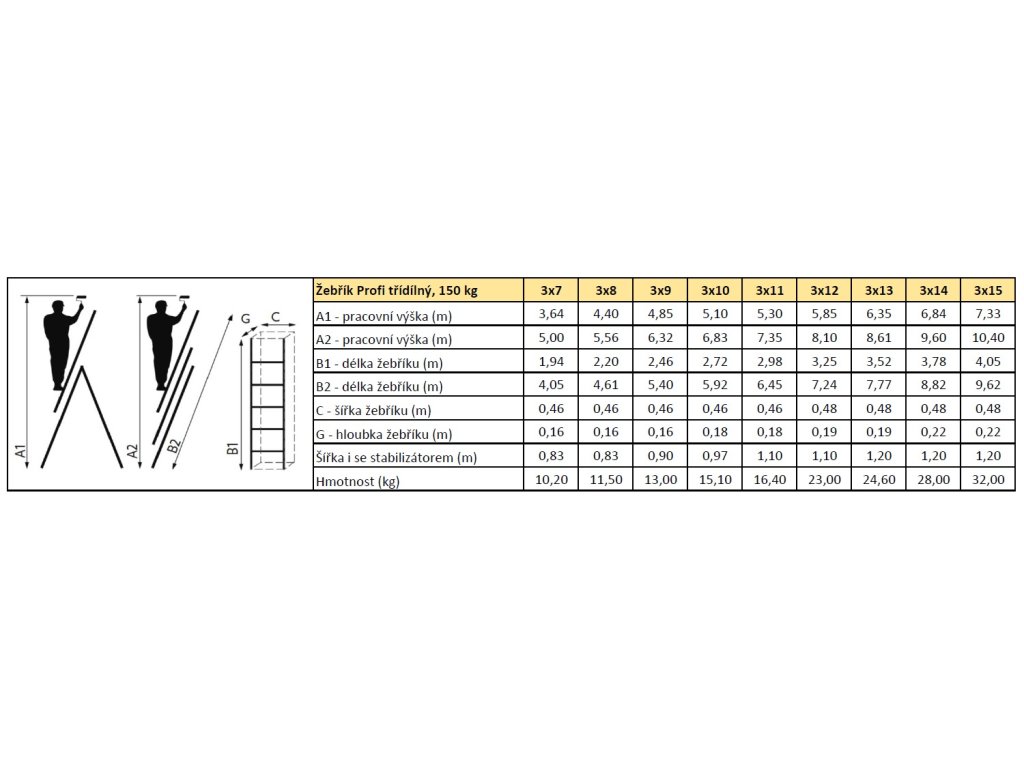 Profesionální víceúčelový hliníkový žebřík 3 x 9 příček.