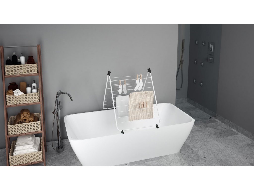 Lakovaný kovový sušák vhodný díky svému tvatu A k postavení na vanu.