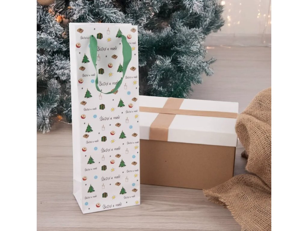 Taška dárková 36x12x8,5cm na víno VÁNOCE