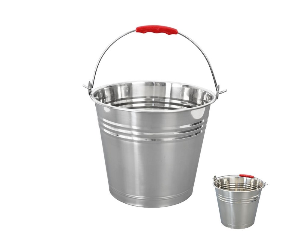 Nerezové vědro s uchem o objemu 10 litrů, průměr 28 cm a výška 25 cm
