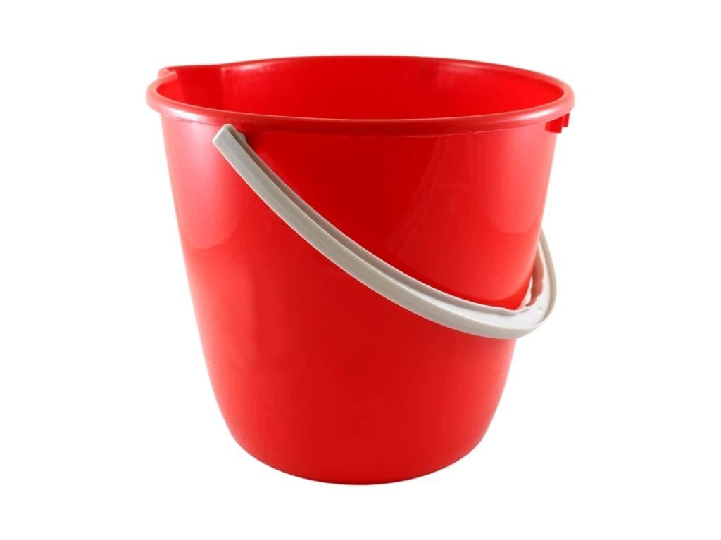 Plastový kulatý kbelík s výlevkou, plastová rukojeť.