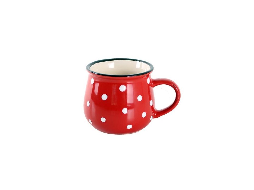 › KUCHYŇSKÉ POTŘEBY › NÁDOBÍ › Džbány | Hrnky | Konvice | Sudy › Hrnek keramika 370ml PUNTÍKY červený
