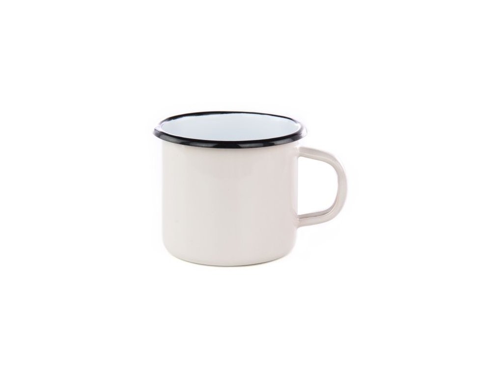 - smaltovaný hrnek s uchem bílé barvy s černým okrajem