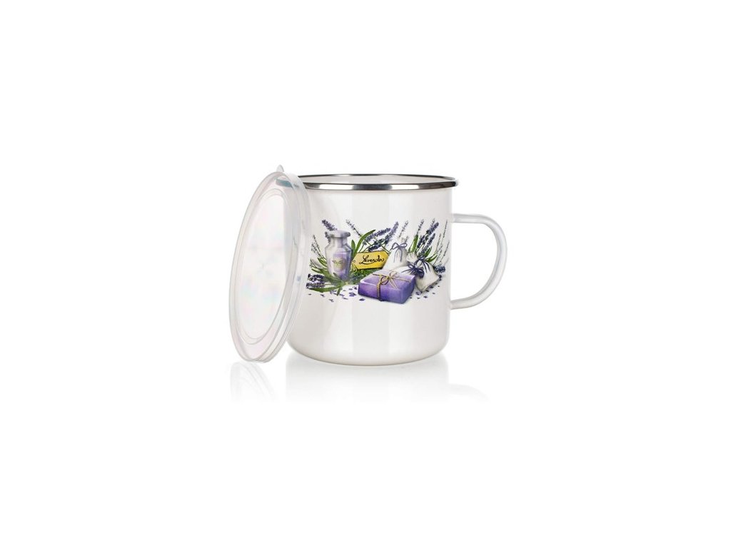 Hrnek smalt 700ml LEVANDULE s plast víčkem BANQUET