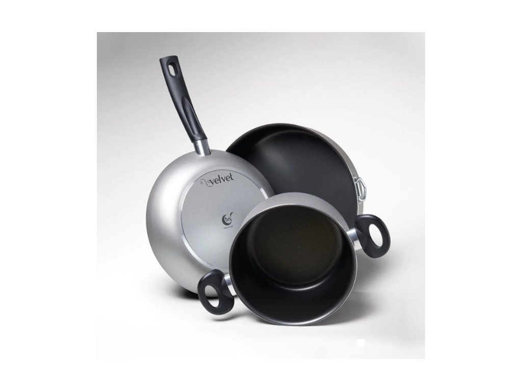 - nádobí z řady VELVET je vybaveno kvalitním vnitřním nepřilnavým dvouvrstvým povrchem IPERTEK z dílny italského výrobce TVS s.p.a.