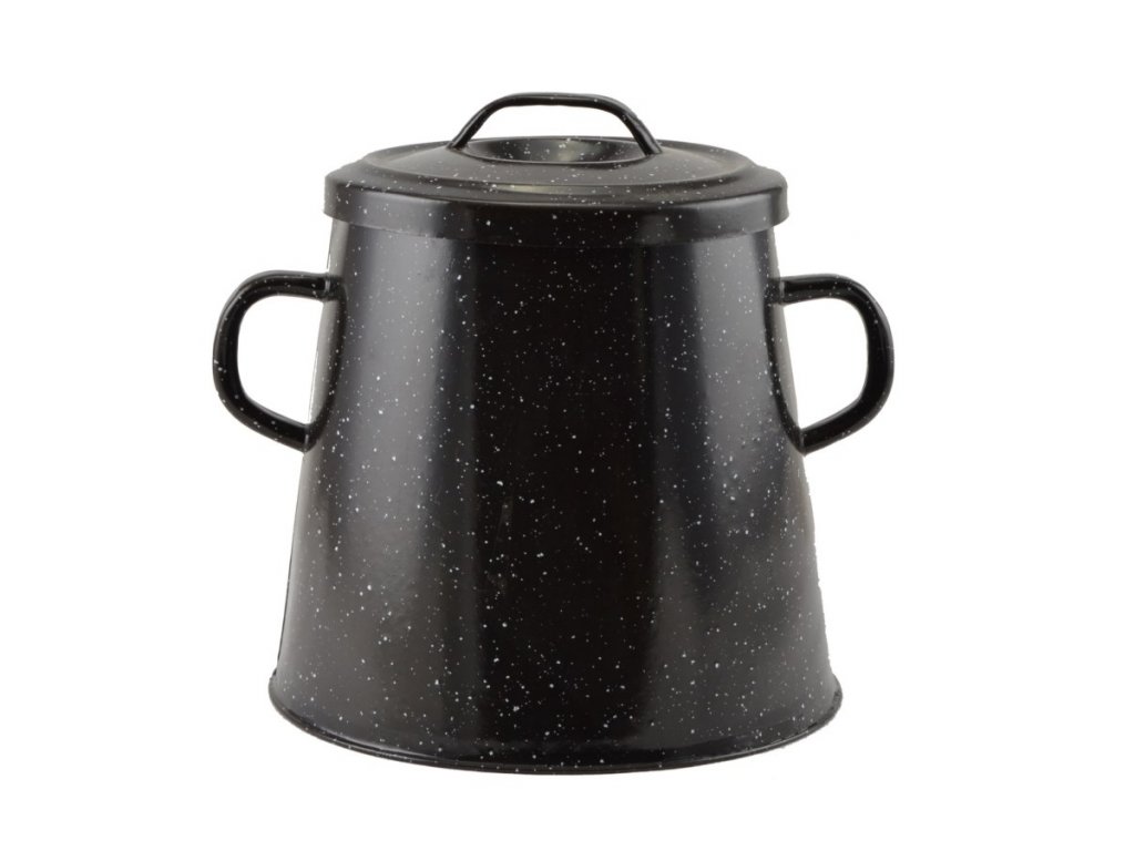 - smaltovaný hrnec s uchy a poklicí objemu 10 litrů, je vhodný především na škvaření sádla, ale také na vaření všech jiných pokrmů