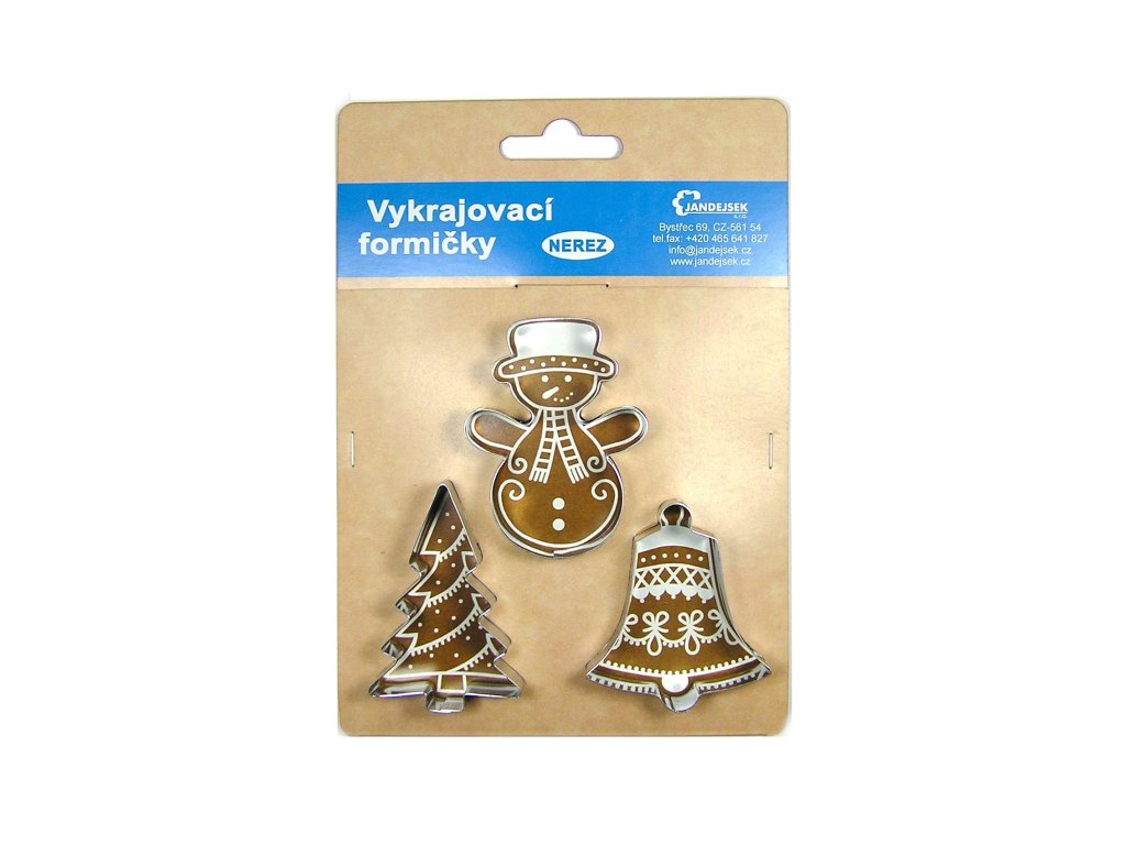 Sada obsahuje tvar sněhulák, stromek, zvonek.