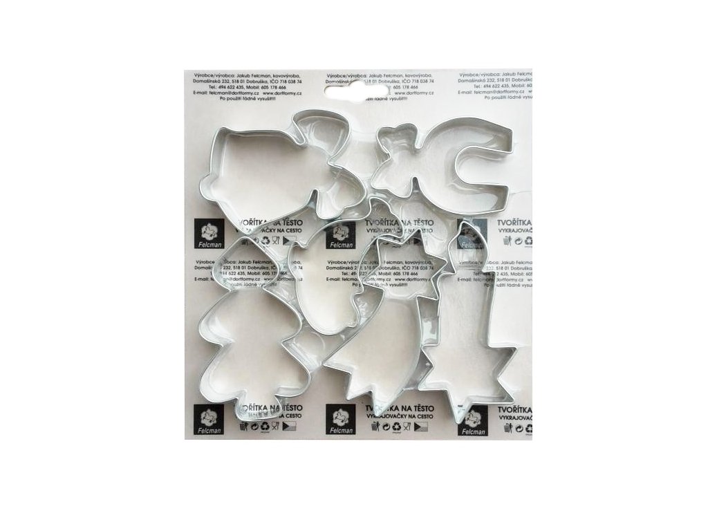 Sada obsahuje zvonek s mašlí, svíčku, stromek, podkovu s mašlí, delfína a kometu.