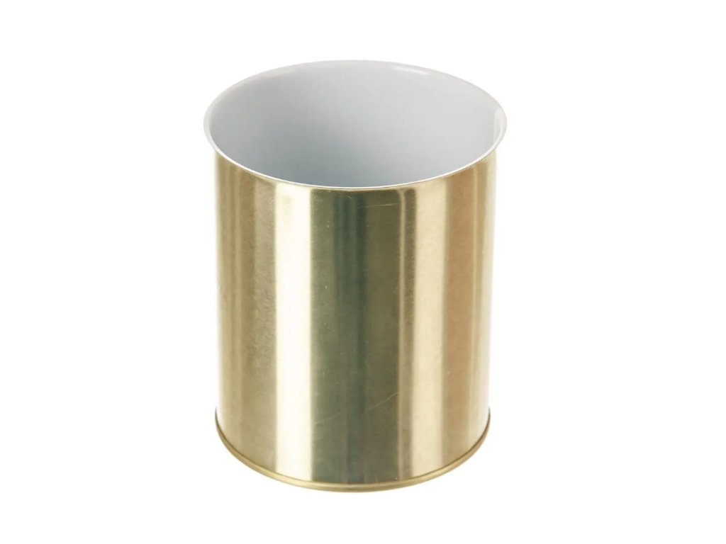 Materiál pocínovaný plech, uvnitř bílý lak vhodný na potraviny, vně zlato lak.